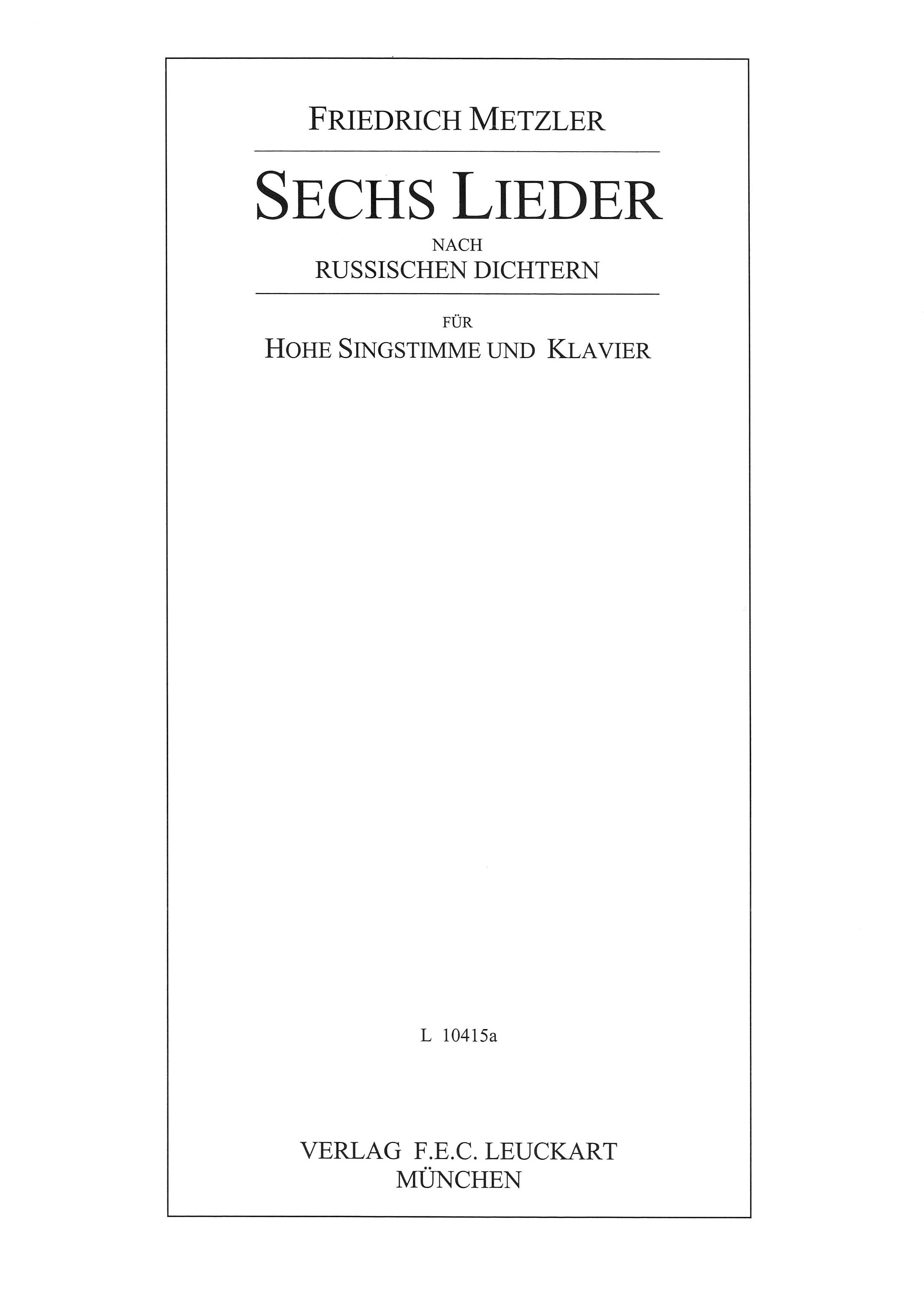 Friedrich Metzler, Sechs Lieder nach russischen Dichtern für hohe Singstimme