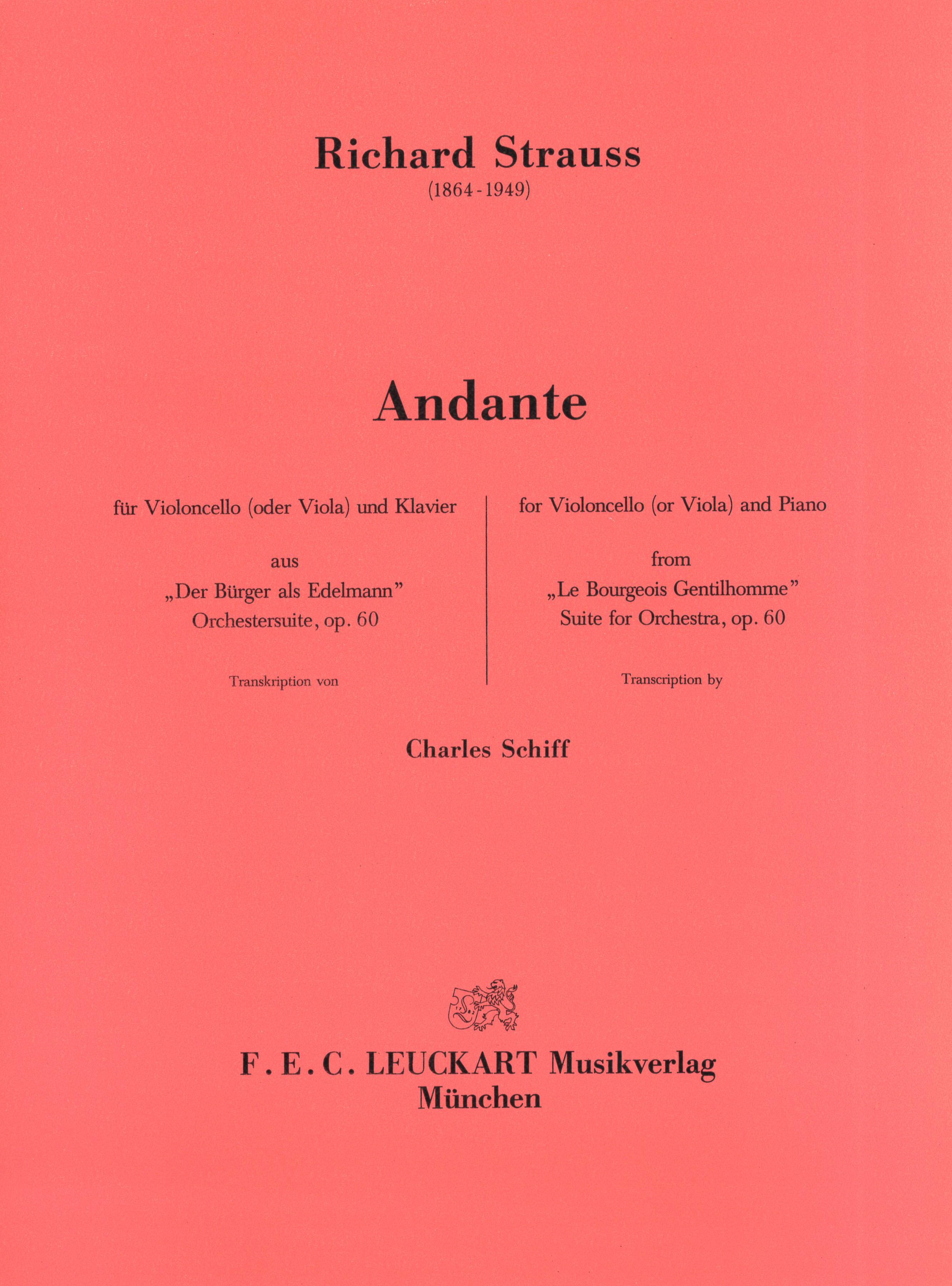 Richard Strauss, Andante aus "Der Bürger als Edelmann" op. 60 für Violoncello (oder Viola) und Klavier Bearbeitung: Charles Schiff Klavierpartitur mit eingelegter Cello/Viola-Stimme Thomi Berg, Leuckart-Verlag