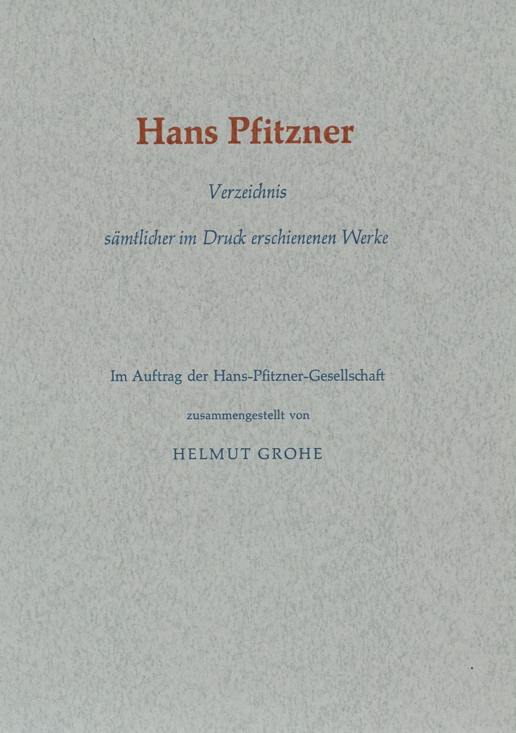 Hans Pfitzner Verzeichnis sämtlicher im Druck erschienenen Werke