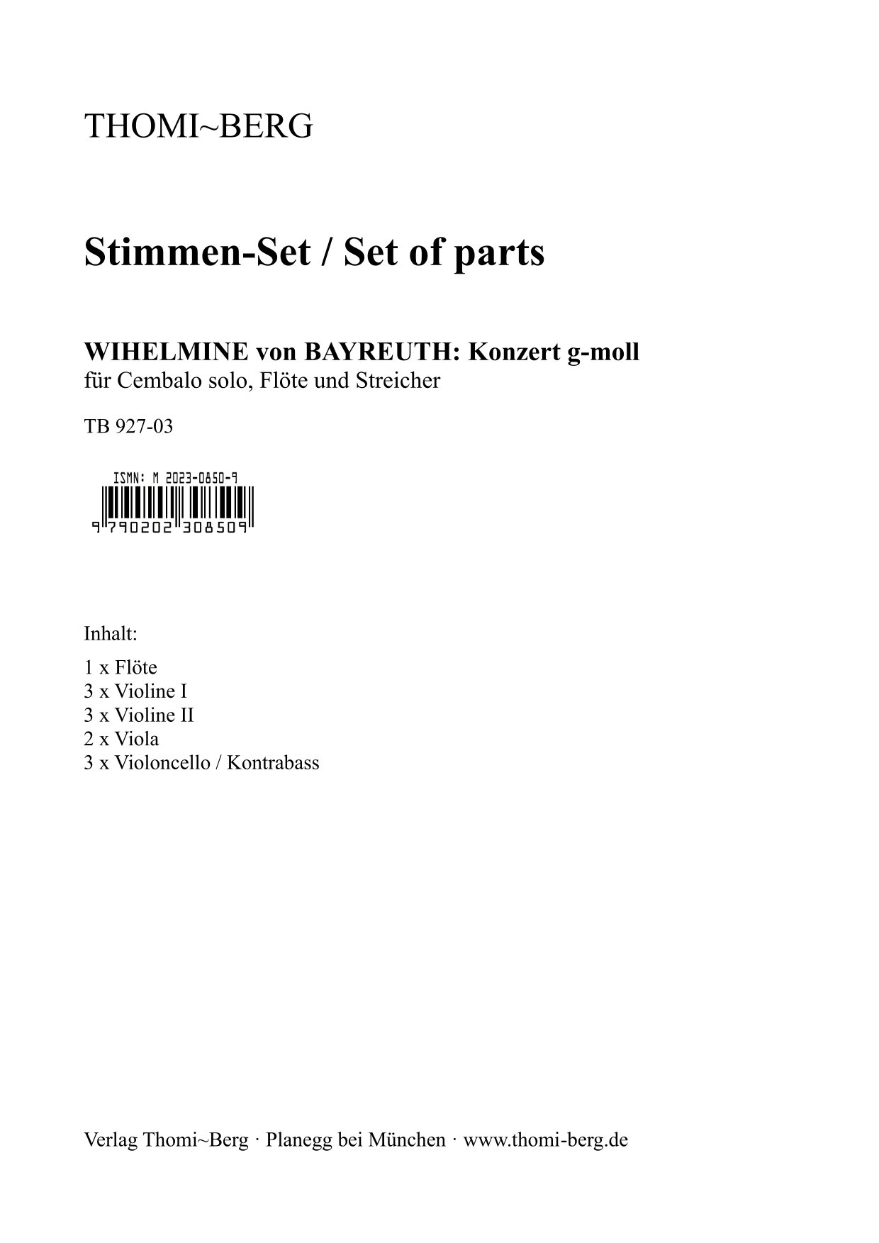 Inhalt: 1 x Flöte, 3 x Violine I, 3 x Violine II, 2 x Viola, 3 x Violoncello / Kontrabass