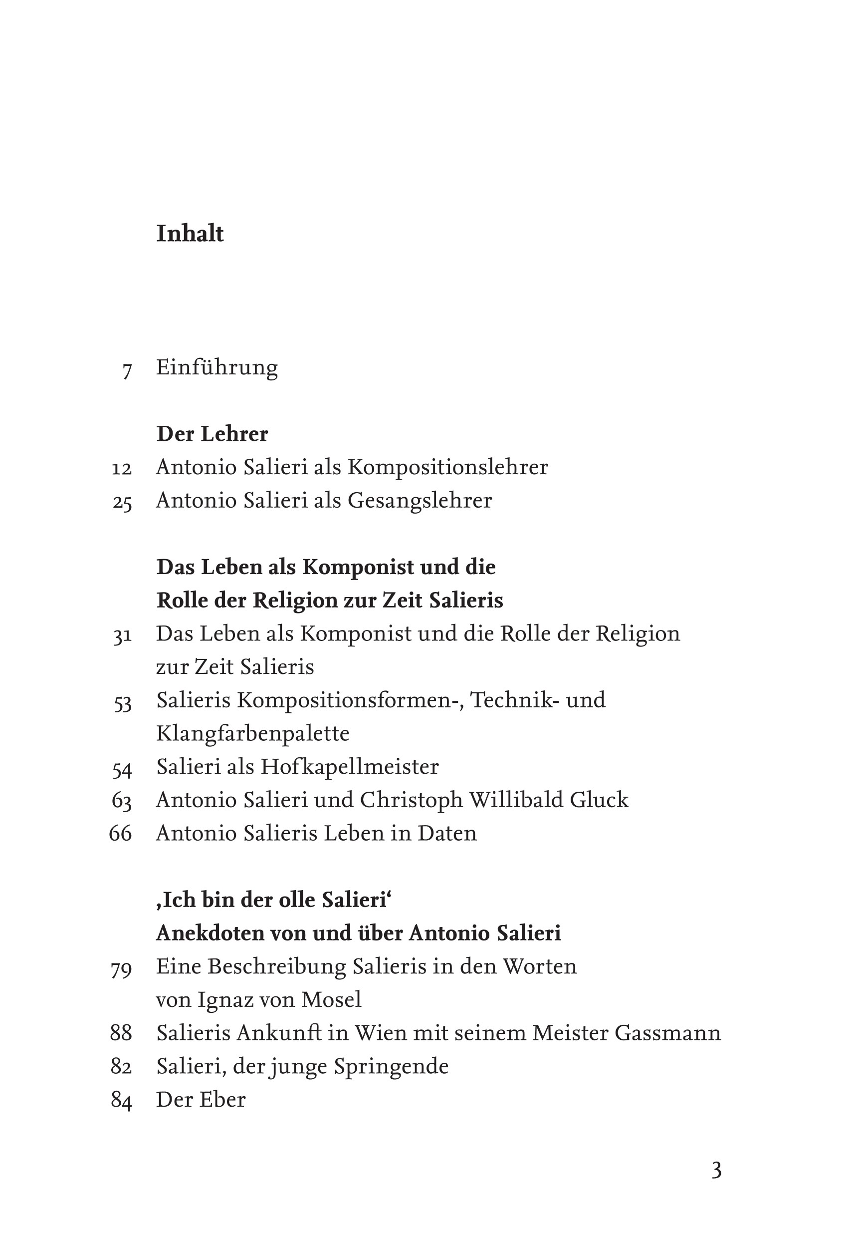 Über das Leben von Antonio Salieri als Lehrer und Komponist, mit Anekdoten von und über Salieri, Werkverzeichnis und Musikalischen Widmungen.